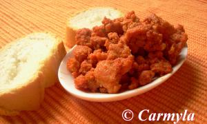 En España y en la Rioja, que es mi tierra, el picadillo de chorizo lo encuentras en cualquier carnicería por lo que nunca lo he preparado yo misma.