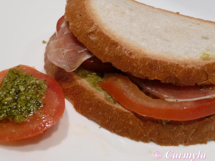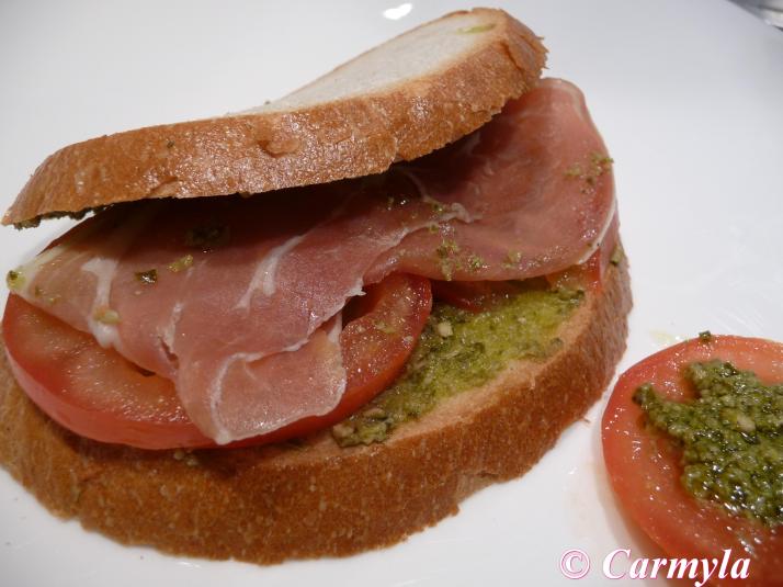 SANDWICH DE JAMÓN SERRANO CON PESTO VERDE