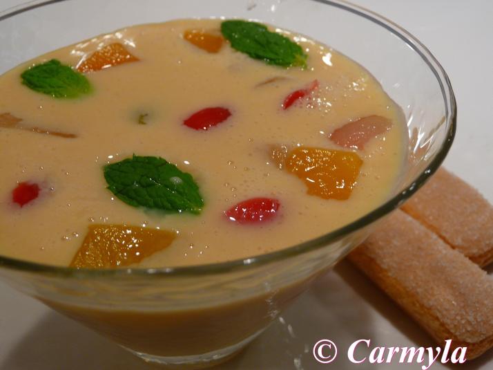 DESCRIPCIÓN: macedonia de frutas en almibar en crema de arroz con leche