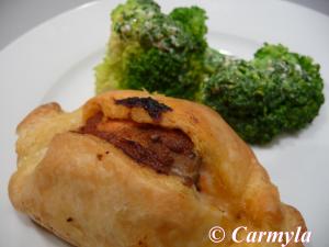 DESCRIPCIÓN: salmón fresco untado con pesto rojo en pasta de hojaldre.