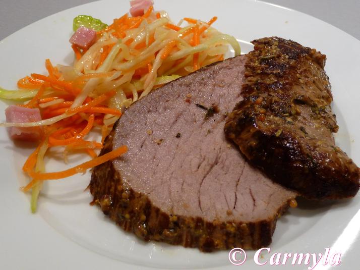 DESCRIPCIÓN: lomo de ternera al horno condimentado con mostaza antigua y especias.