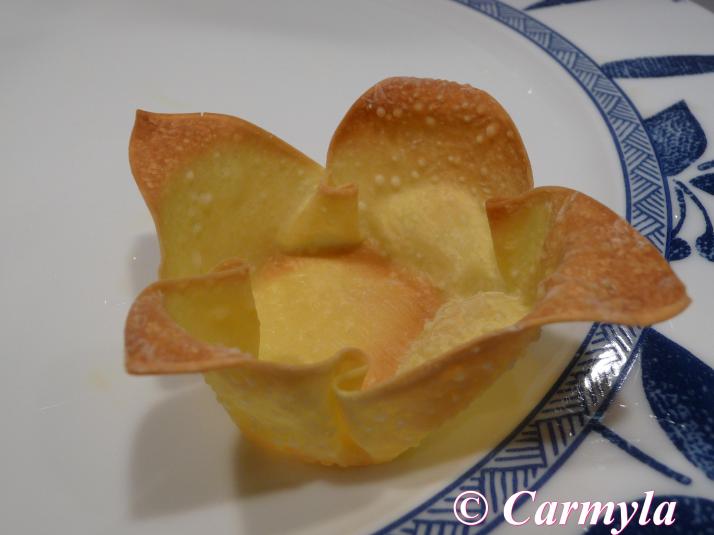DESCRIPCIÓN: cestas hechas con masa wonton en bandeja para hacer magdalenas.