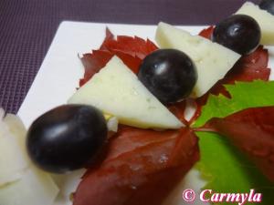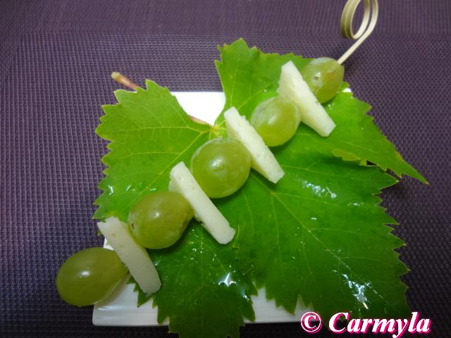 DESCRIPCIÓN: brocheta de uvas blancas y negras con queso