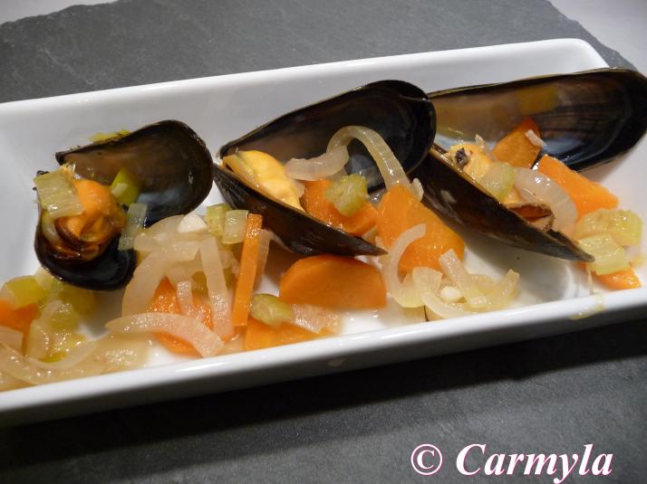 DESCRIPCIÓN: mejillones al vapor con verduras y vino blanco