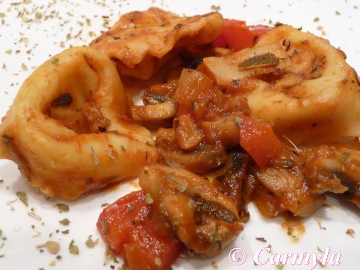 TORTELLONI Y CHAMPIÑONES CON TOMATE