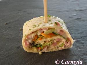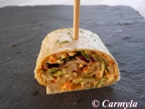 DESCRIPCIÓN: tortillas mejicanas rellenas y enroscadas. Dos tipos: “ensalada de jamón cocido” y “pollo hawai