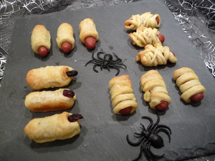 - Prepara las bandejas de horno con LAS VARIACIONES DE HOJALDRE (los dedos de bruja, de brujo, de brujita y las momias).