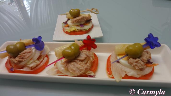 Si estás un poco harta/o de fritos o tapas pesadas y te apetece una tapa sencilla, sana y sabrosa, esta tapa de ensalada ilustrada es “tu tapa”.
