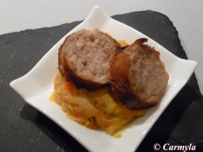 DESCRIPCIÓN: salchicha alemana al horno con pure compacto de patata y zanahoria. Sigue leyendo